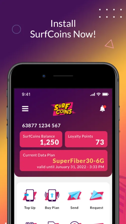 Ang SurfCoins App ay ginagamit pang top-up, manage, at monitor ng iyong Surf2Sawa Prepaid Fiber account.