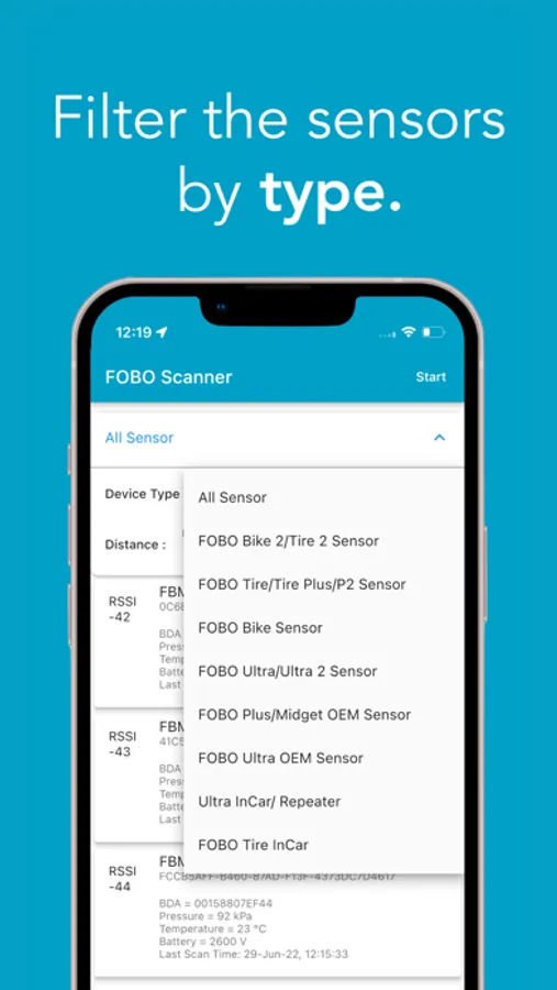 * Scan FOBO sensors (FOBO Bike 2, FOBO Bike, FOBO Tire 2, FOBO Tire, FOBO Tire Plus, FOBO P2 and FOBO Ultra).