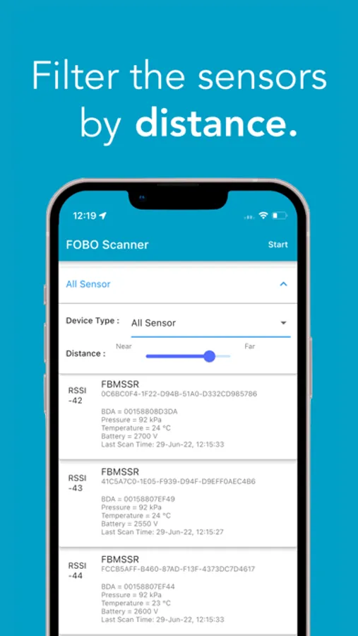 FOBO Scanner is a universal Bluetooth scanner app specifically developed for scanning Bluetooth Low Energy belonging to FOBO sensors that are advertising and discover their services.
