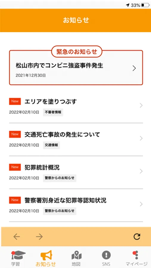 ※愛媛県警察が必要と判断した情報は、通知設定に関わらず配信される場合があります。