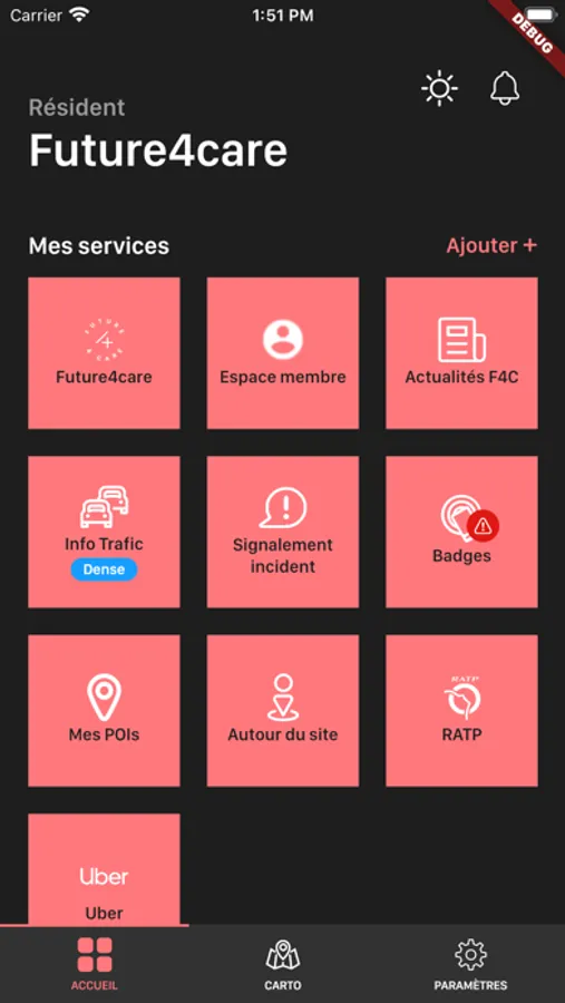 Cette application vous offre un accès aux services offerts par Future4care, en particulier les outils relatifs au bâtiment de Future4care, situé 8 rue Jean Antoine de Baïf 75013 Paris.