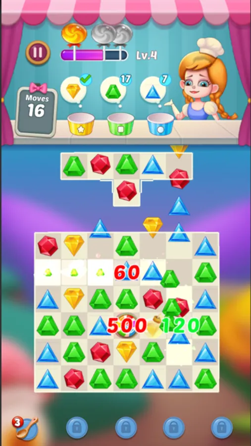Swap and match jewels in dazzling combinations in fun gameplay to complete the challenge.
