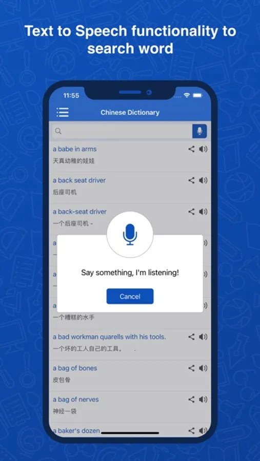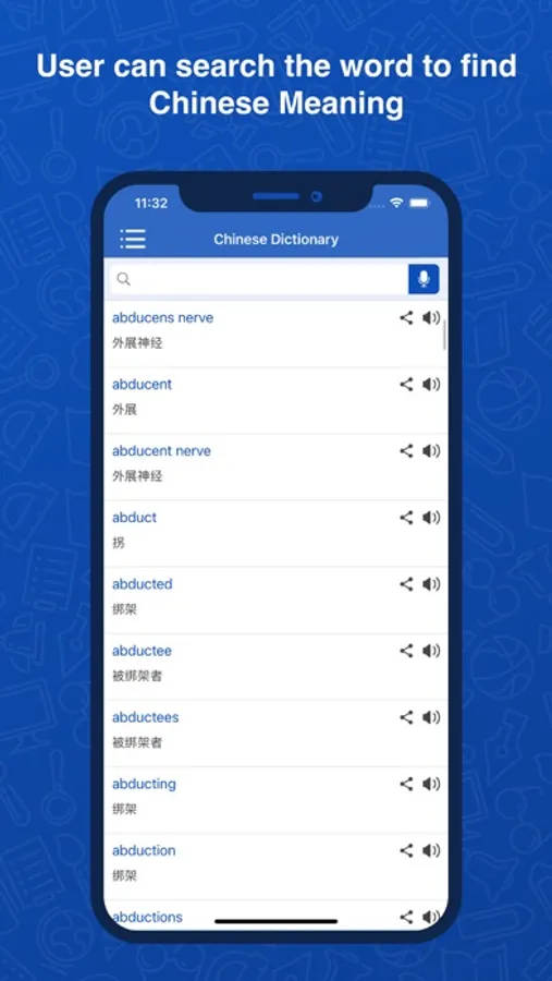 2- In Chinese Dictionary: Translator app, Users can search the word by their voice and read word meaning in both Chinese and English.