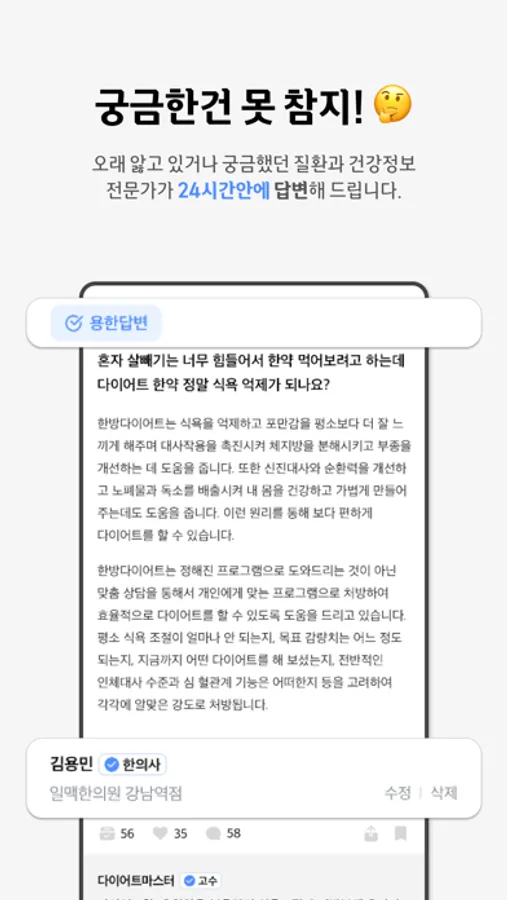 한의사 분들께서 하.루.만.에. 답변해 드립니다.