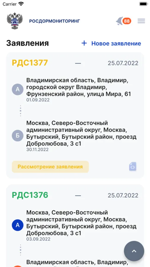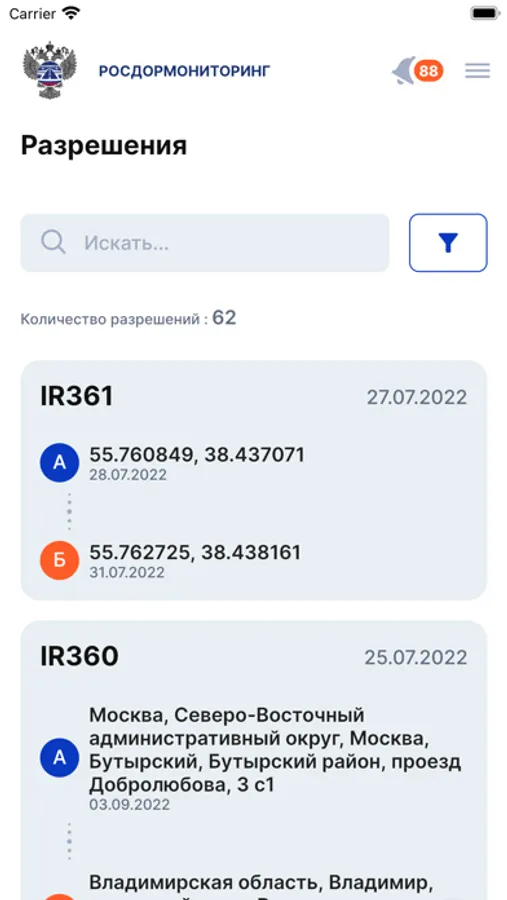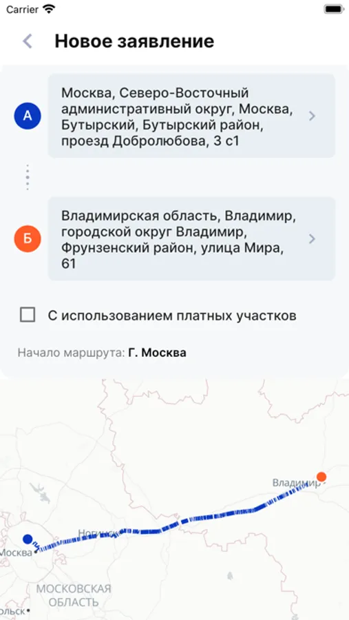 Designed for filing an application for obtaining special permits for the movement of heavy and (or) large vehicles on the roads in electronic form