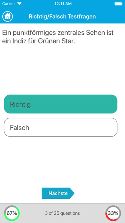 - Es gibt 2 Quiz-Modus. Multiple-Choice Quiz und Richtig/Falsch Quiz.