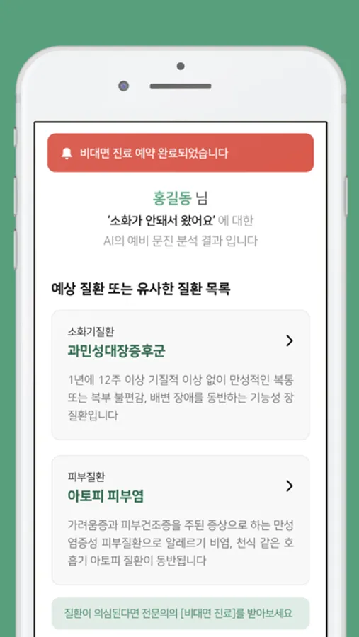 언제 어디서든 인공지능 주치의에게 비대면 의료상담을 받을 수 있습니다.