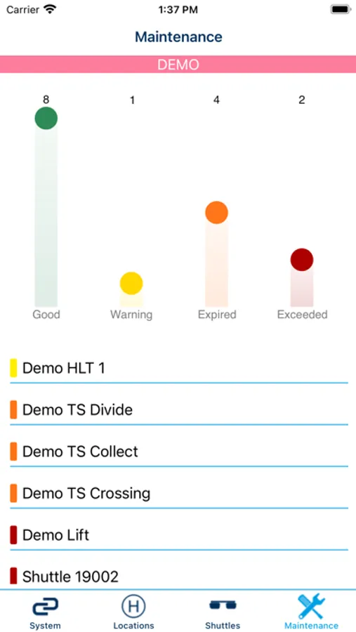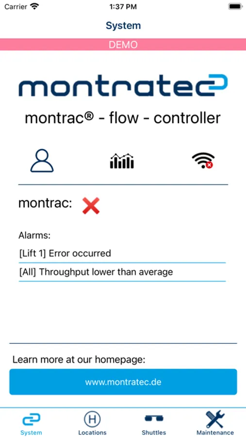 With MFC-Mobile as a source of information for your modular montrac® system, you get an overview of: