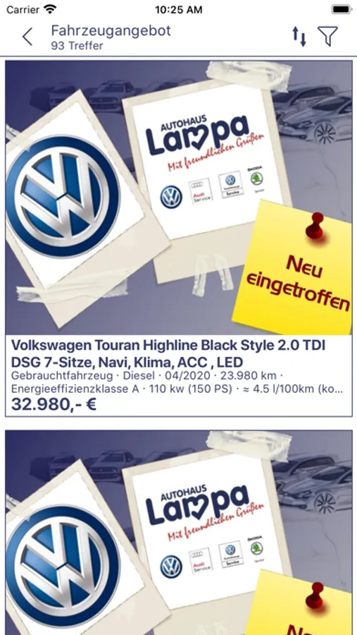 Mit unserer Autohaus Lampa App verpassen Sie keines unserer Fahrzeug-Highlights. Die praktische Push-Funktion versorgt Sie stets mit den neuesten Angeboten und News aus unserem Haus.