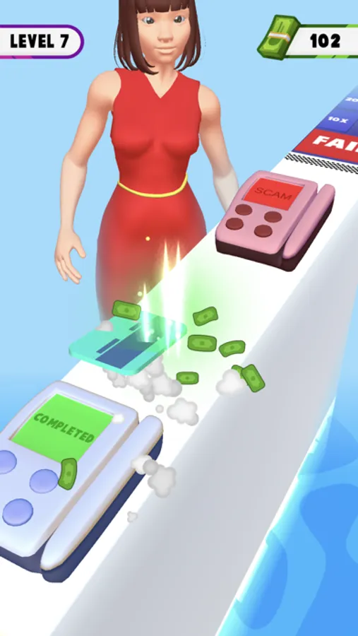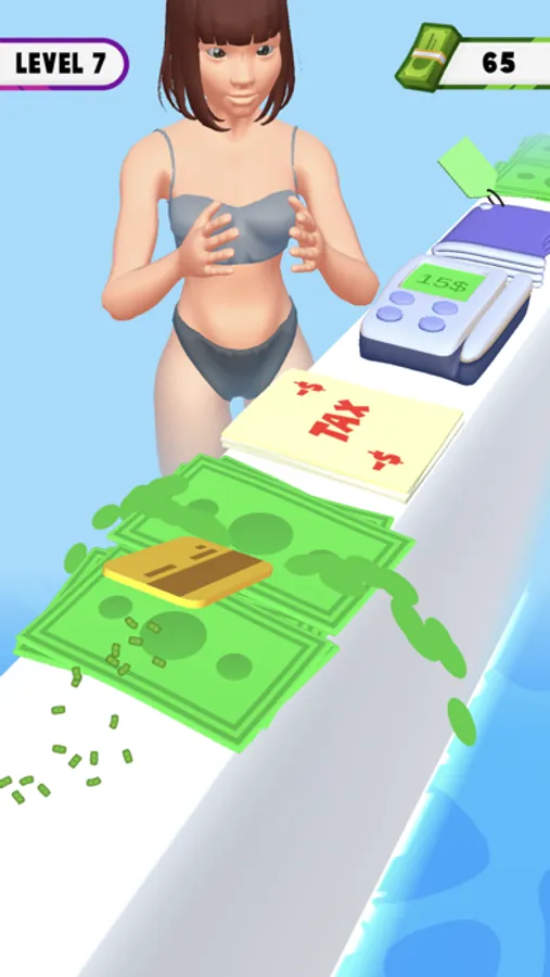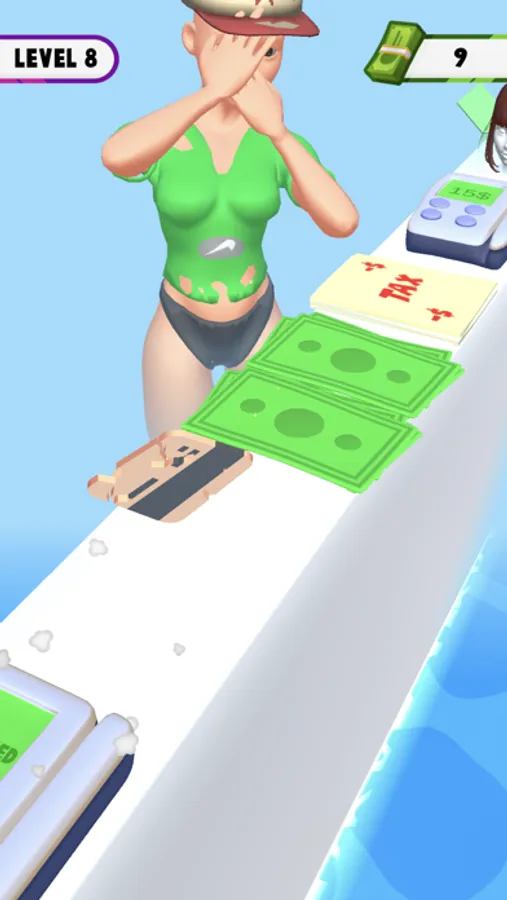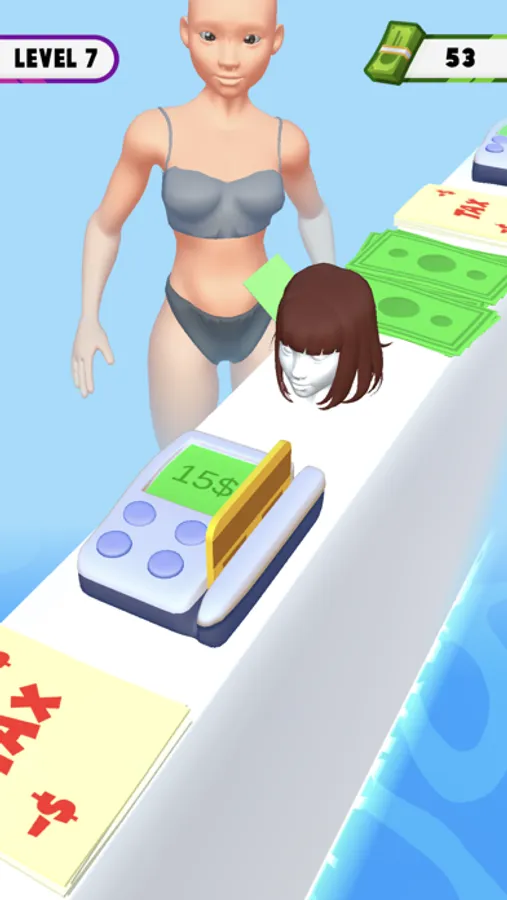 Use your finger and tap on screen to collect money with your credit card. Buy new shiny clothes and wear them to show how fashionate you are!