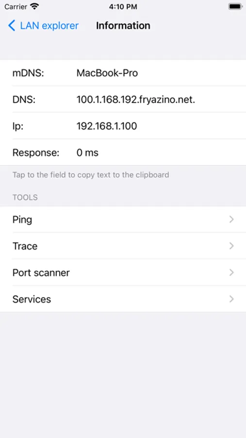 Common tools for network diagnostics right in your pocket. This app allows to explore lan and external networks, check internet connection or servers availability with using your phone. The following tools are currently available:
