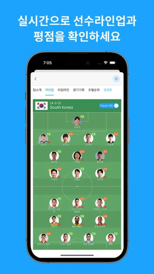 2. 라이브스코어 : 축구에 최적화된 라이브스코어를 제공합니다.