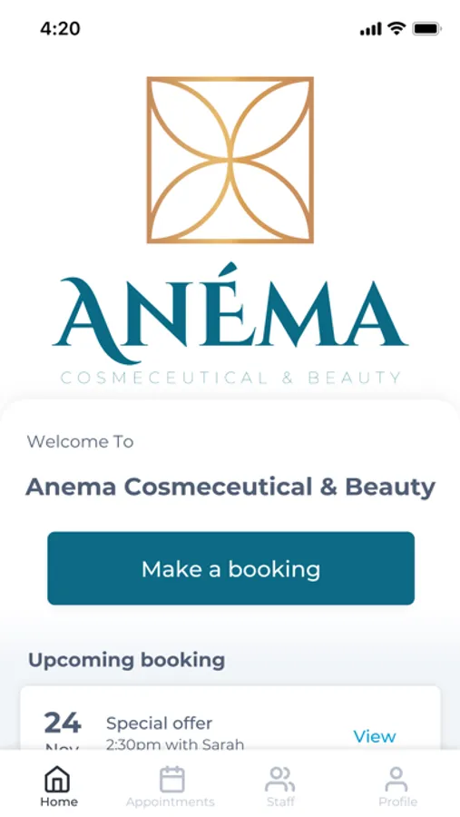 The Anéma Cosmeceutical & Beauty app makes booking your appointments and managing your loyalty points even easier. You're just a few taps away from feeling good and looking great!
