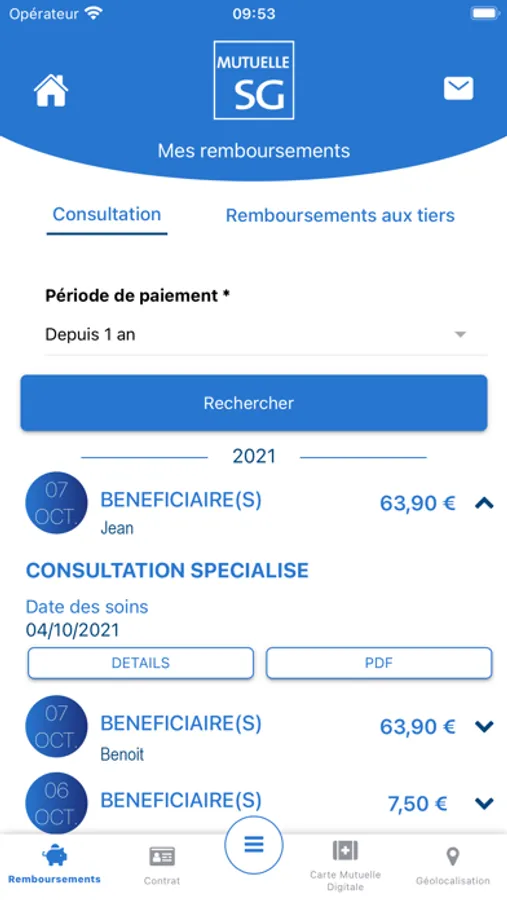 - Consultation en temps réel de vos remboursements, pour vous et vos ayants droit,