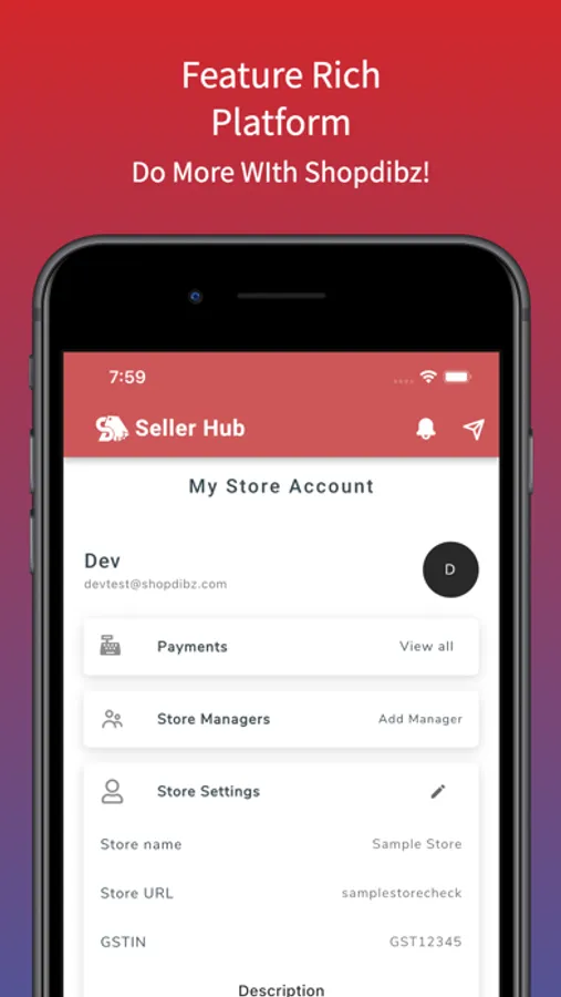 Web version (Beta) available at https://www.sellerhub.shopdibz.com.