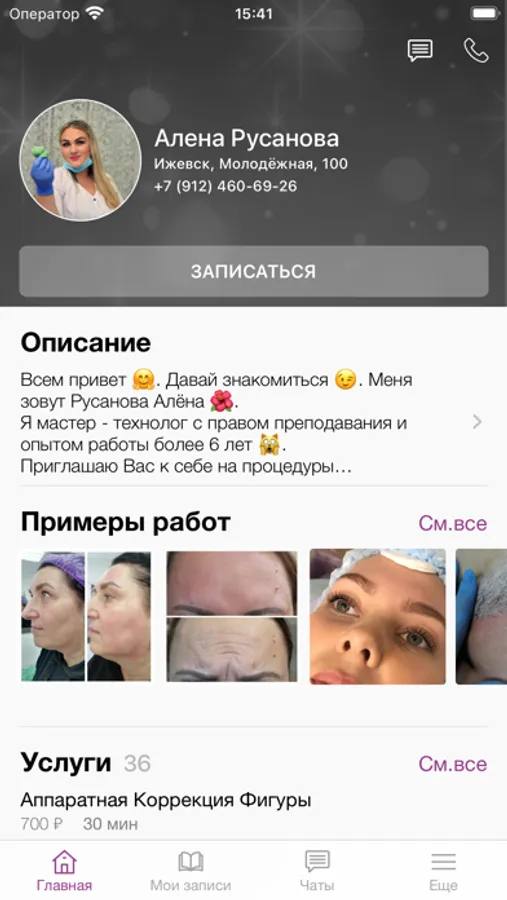 * записаться на желаемую процедуру , или же попробовать что-то новое