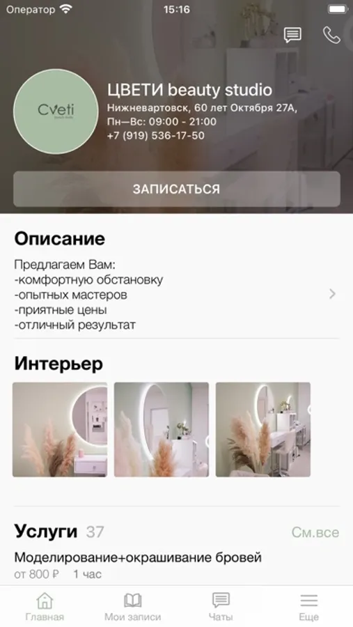 •ознакомиться с детальной информацией (прейскурант/ адрес студии/ график работы/ портфолио мастеров)