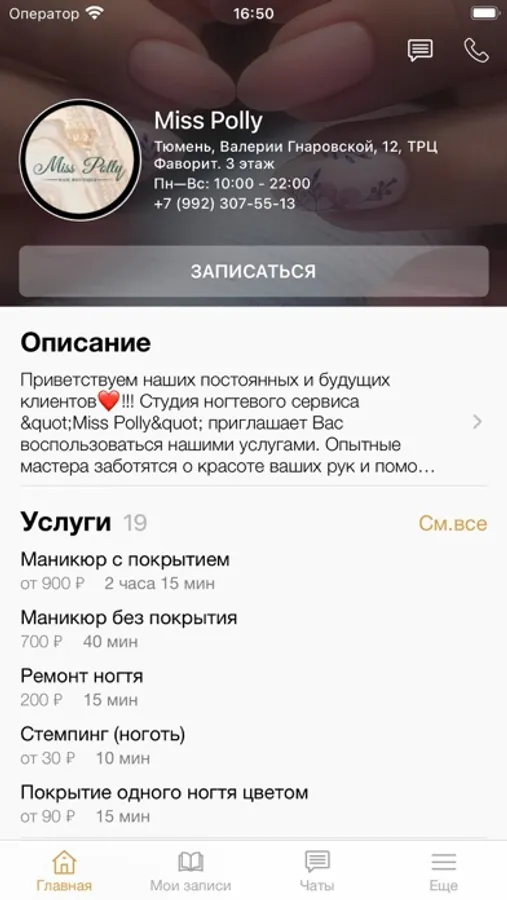 Официальное мобильное приложение студии маникюра и педикюра Miss Polly.