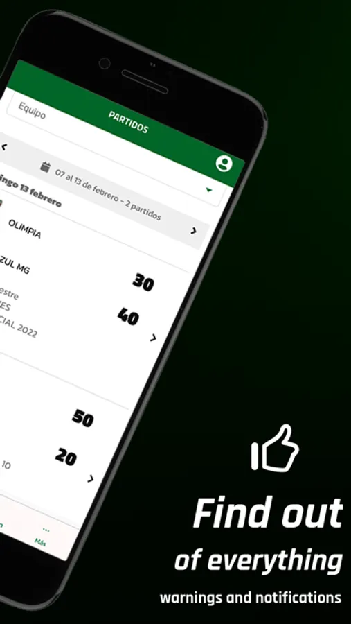 Stay always informed and consult at any time the most important information, your parties, teams and the latest news.