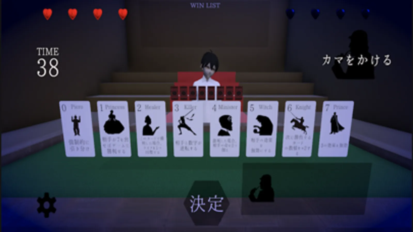 0~7までの数値が書かれたカードをお互いに出し合い、勝敗を決めるカードゲームです。それぞれのカードには効果があり、上手く効果を使って先に相手のライフを4つ削った方が勝利します。新機能の「カマをかける」は相手に自分の出すカードを宣言できます。これによって相手の心理を乱れさせたり、自分の思い通りに相手を動かそう!