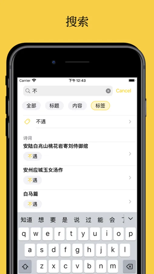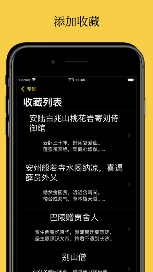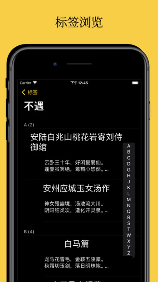 在其中可以浏览诗仙的诗歌、散文及书法。按照体裁、标签、地点分类,方便查找。