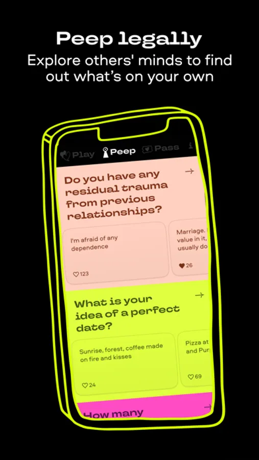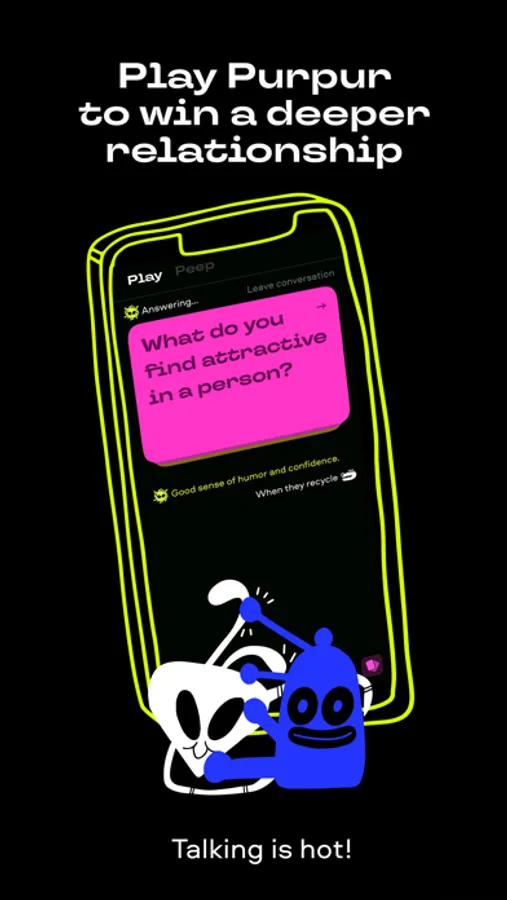 Connect with strangers. Find your playmate by messaging those whose responses appeal to you. Purpur is a shame-free zone.