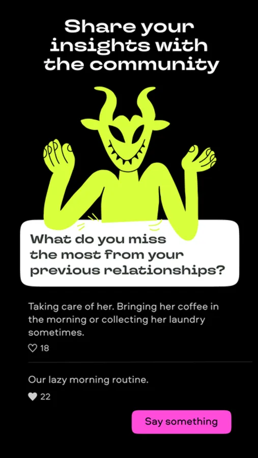 Purpur asks tricky questions but never fishes for personal info. Everyone is free to share their thoughts with the community while staying anonymous. We moderate the responses and make the platform a safe and nice space to share.