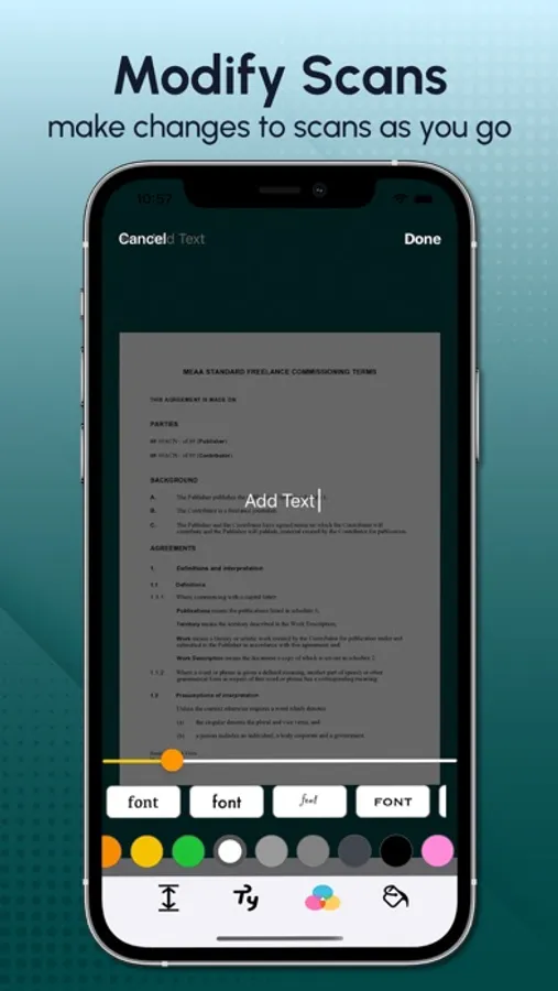 Produce high-quality images by scanning and OCRing documents. Text, forms, signing, drawing, and chopping are all possible. You can send PDFs / JPEGs / TXTs / Docxs as well as SMB, Cloud Services, WebDAV, and iCloud / Wi-Fi file sharing. You can also share the document with a link.
