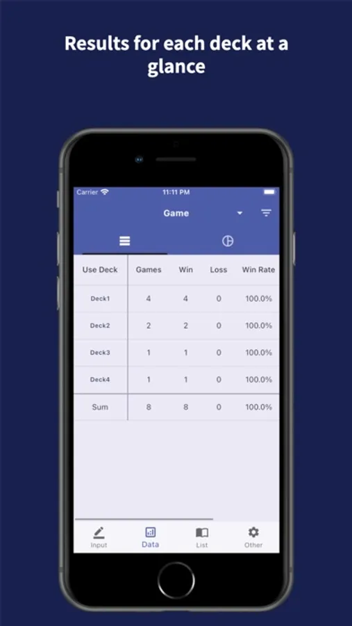 Enter the results of your games, and keep track of them to figure out what you need to do to win!