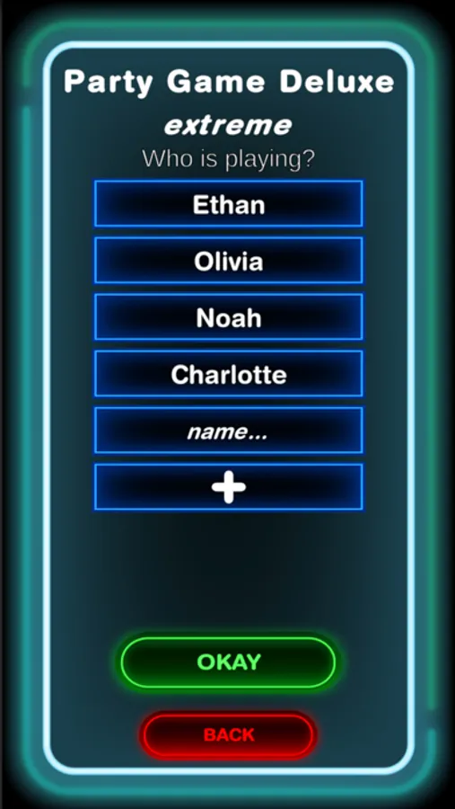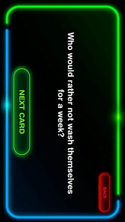 You can choose from four different party games: "Never Have I Ever," "Who Would Rather," "Truth or Dare," and "Party Game Deluxe!"
