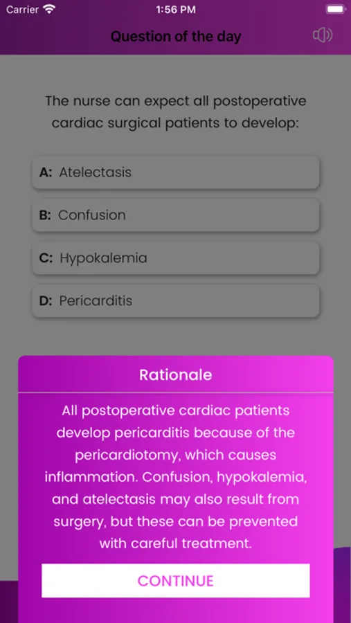 This app is setup according to AACN's Adult CCRN Examination Blueprint. The following areas are covered: Cardiovascular, Pulmonary, Endocrine, Hematology & Immunology, Neurology, Gastrointestinal, Renal, Multisystem, and Professional Caring and Ethical Practice. Each clinical knowledge section begins with the basics and progress to an advanced level of knowledge.