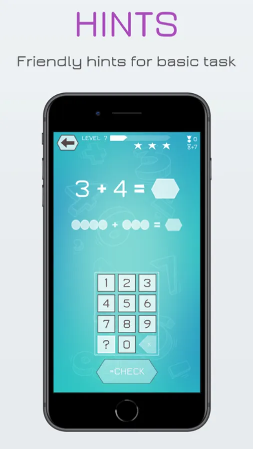 * Friendly hints for simple equations, complex hints for more difficult tasks.