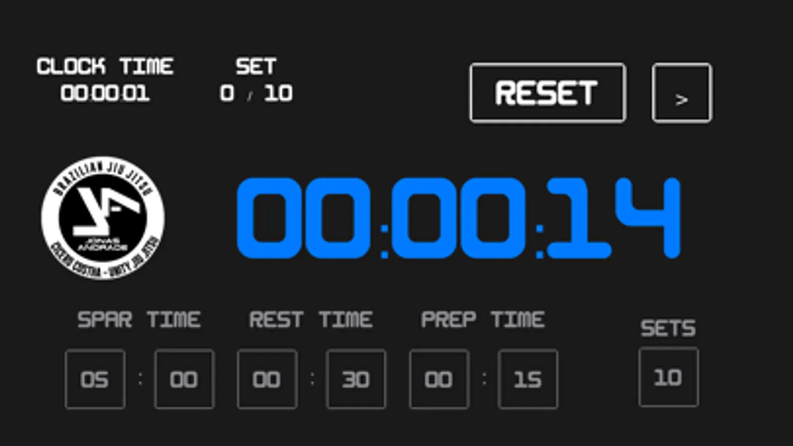Simple sparring timer for BJJ with prep time, sparring time and rest time. Settings and full screen screens. No adds.
