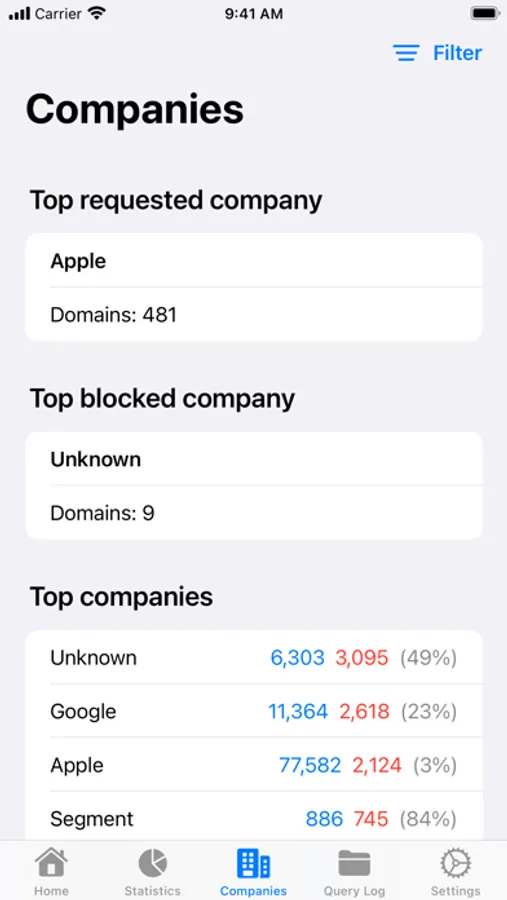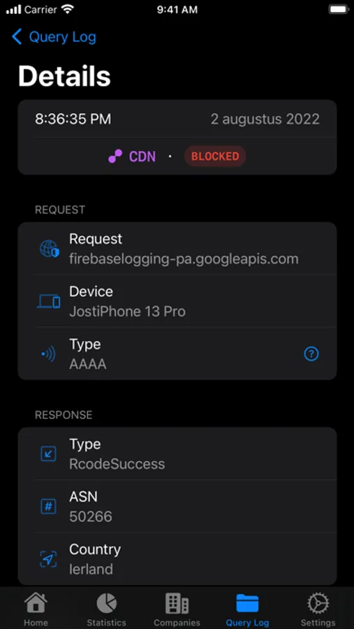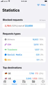 Get insights in the top blocked domains or destinations. Search through your queries in the Query Log with detailed request and response info.