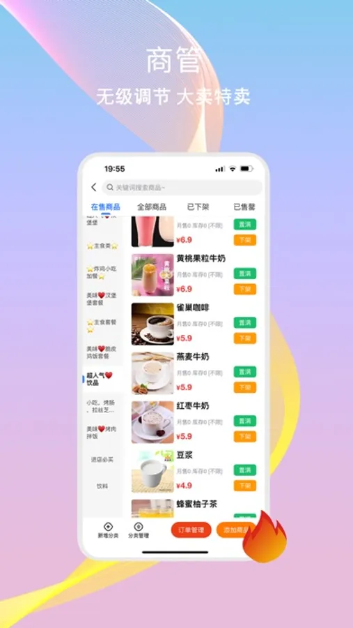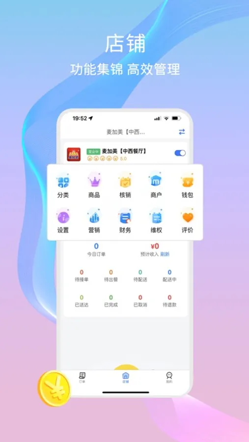 商家可以在 该APP方便的接受并处理用户订单,处理催单,处理退款,账户在线结算、对账,营销门店,管理干饭去外卖的门店,随时调整营业信息、商品库存等。让你轻松管理店铺。