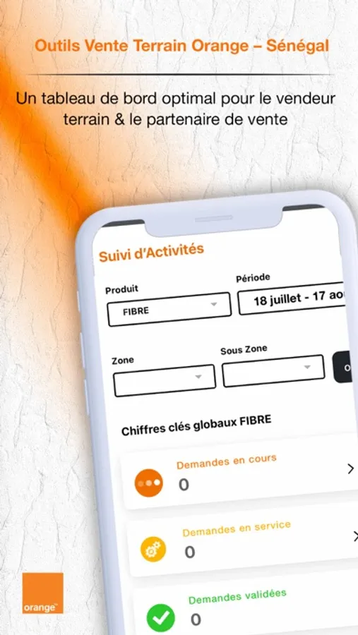 • La version App : disponible pour le vendeur Terrain Orange (VTO) et le partenaire de vente (PVT).