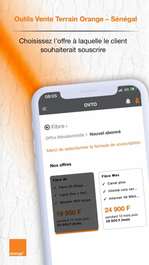 L’outil de vente terrain d’Orange (OVTO) a été conçu afin de faciliter la vente des produits Broadband fixe à travers le territoire sénégalais.