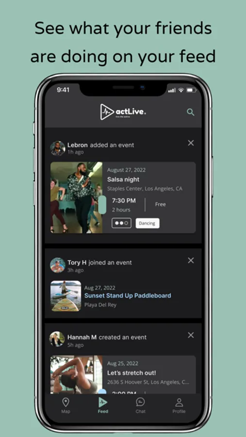 Finding a +1 (or more) near you to get outside and move should be easy. That’s why we made actLive, a social fitness app to organize and join healthy activities in your neighborhood.