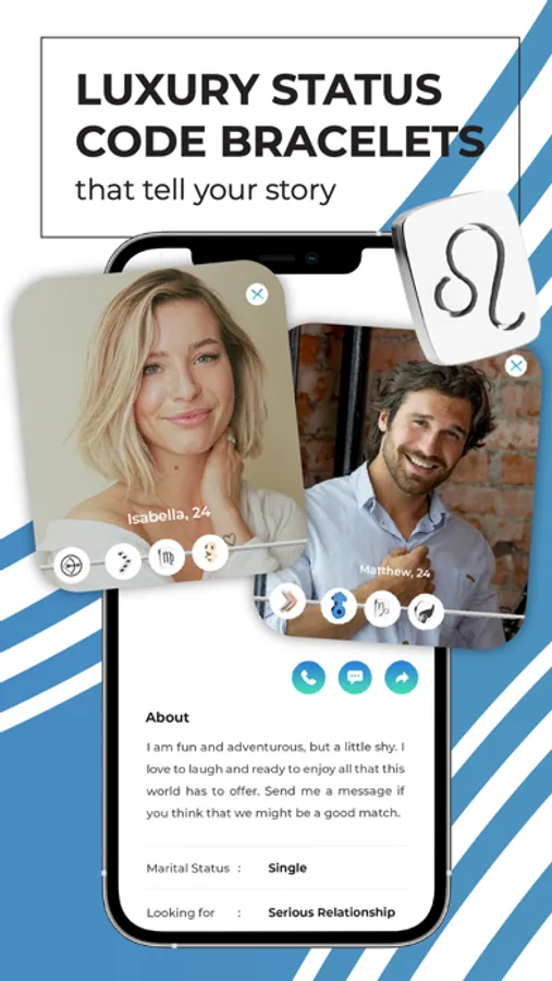We believe we’ve found an answer. Aphroditte and our Coditte bracelets bridge the gap between online dating and real life. Aphroditte is much more than just another dating app. It offers the opportunity to meet the people you want to meet, whether you’re looking for dating, a relationship, someone to explore a common interest with, or just a friendly encounter. It is an inclusive community that connects like-minded people and creates relations based on an actual status that reflects the true you – and the true them.