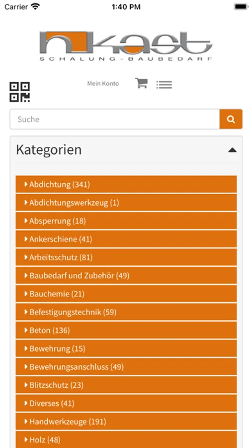 Mit dieser App erhalten Sie einen schnellen Zugriff auf den Webshop und können Produkte mit dem integrierten QR-Code Scanner suchen.