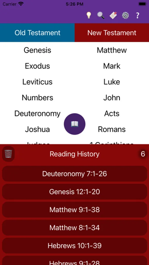 > History Tool: Ready to revisit a previous passage Scan the History Tool to see all recently read chapters and to quickly jump between them.