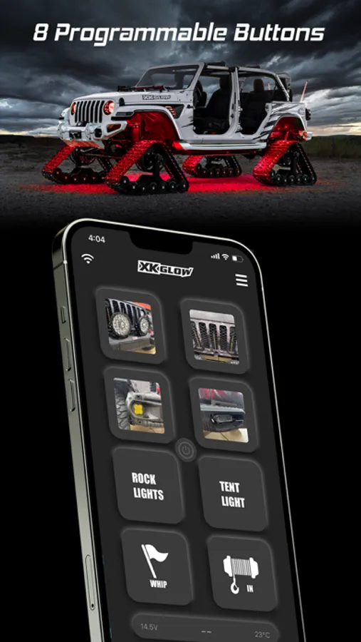The XKcommand system allows you to connect all 12V accessories in one hub and program the button functions through the app. The XKcommand controller is required to work with this app.