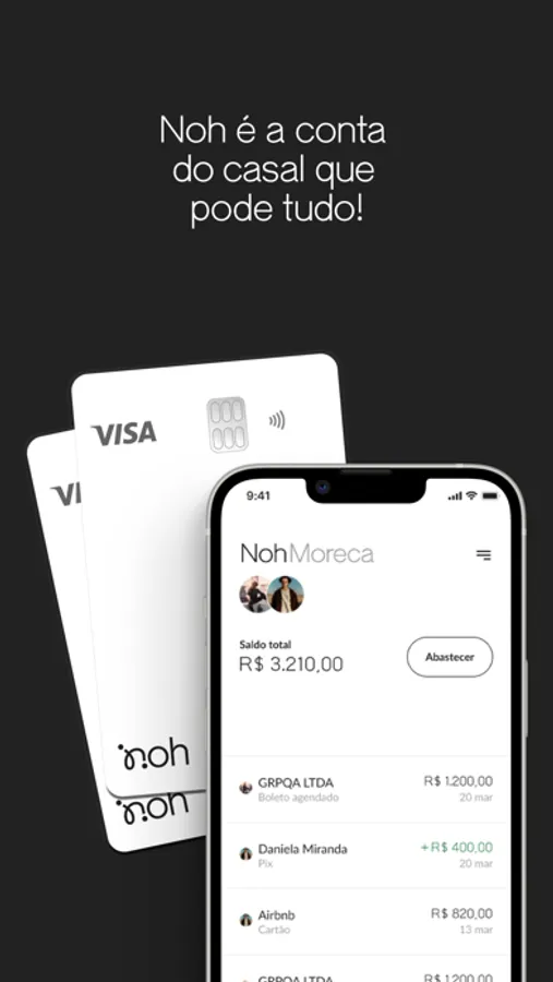 Não precisa mais controlar seus gastos em grupo de WhatsApp, Splitwise, Tricount e Excel... isso é coisa do passado! A Noh é a conta conjunta digital do casal.