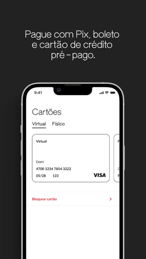 - Cartão virtual (para pagar iFood, Netflix, etc)