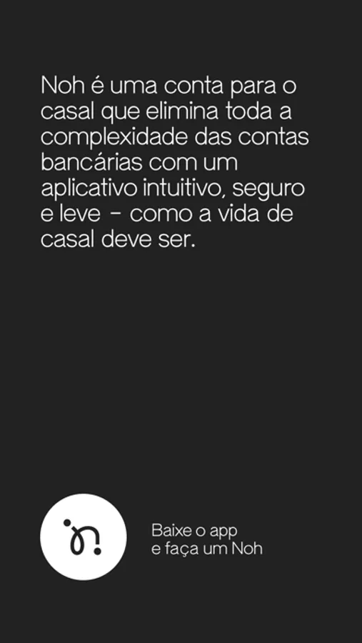 A Noh é a melhor alternativa para o casal que busca uma conta conjunta simples, moderna, digital e com atendimento completo. Ideal para o casal que soma dinheiro para dividir experiências.