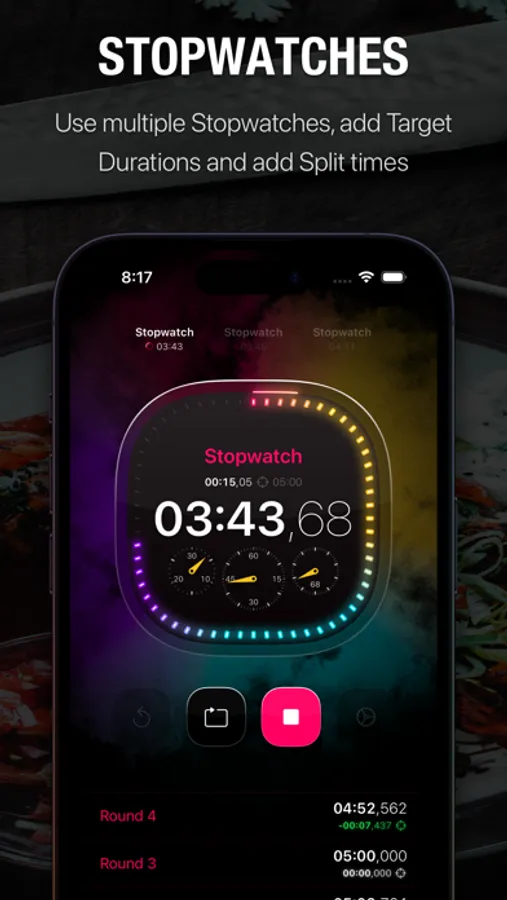 - Create beautiful stopwatches and run them simultaneously