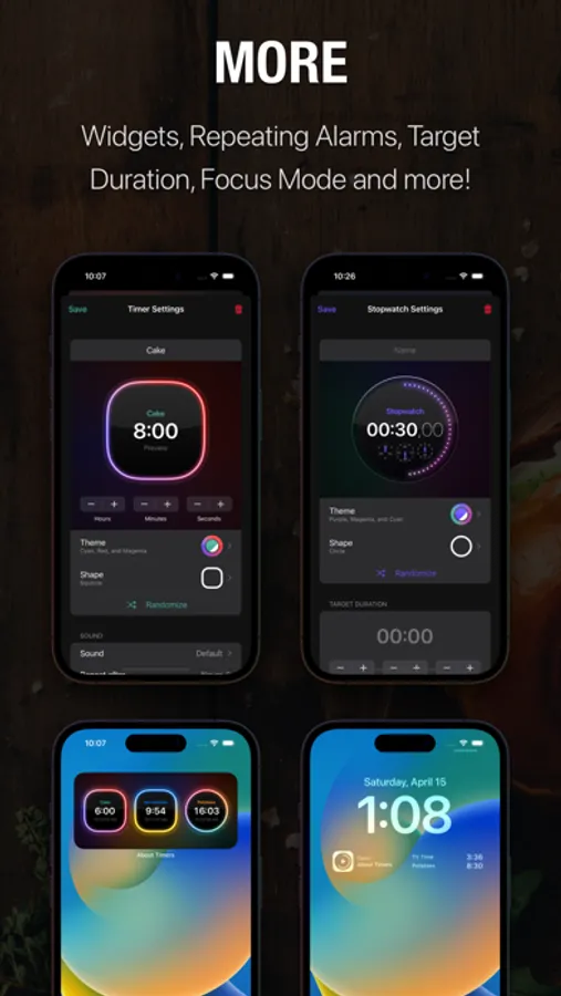 But it doesn’t end there. About Timers also features beautiful Stopwatches, Lock Screen and Home Screen widgets.