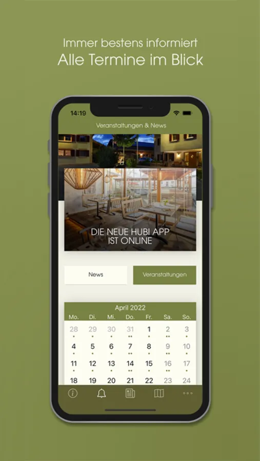 Bleibe über jeden Termin und jede Neuigkeit im Hubertus informiert
