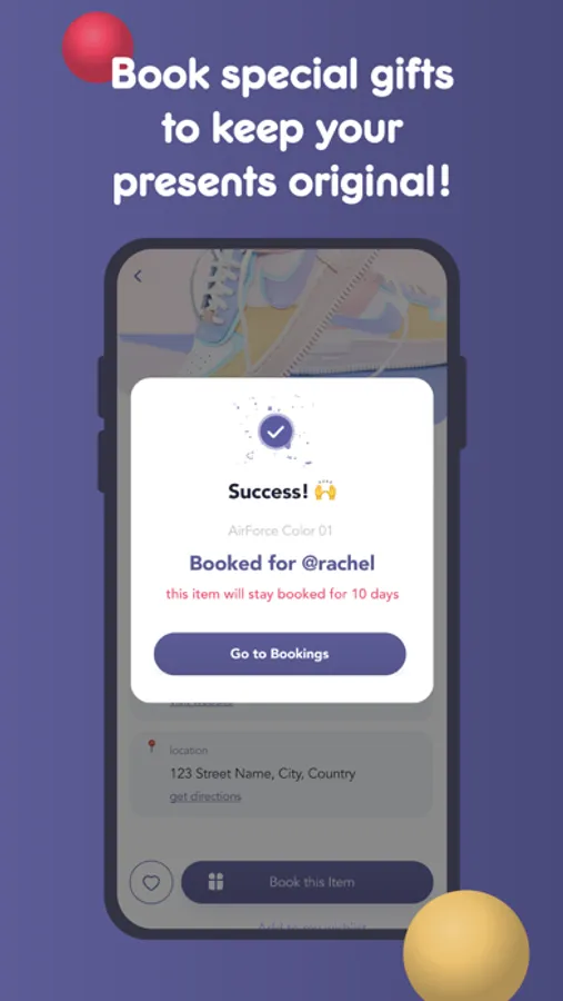 Add friends and navigate their wish lists, if there’s a product you can afford and want to get as a gift for them, then just BOOK IT! They will be notified without knowing it’s you, and you can cancel anytime during the time period of the booking. How about that surprise when they know it’s from you!