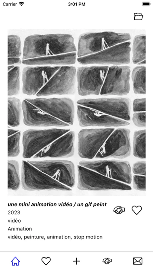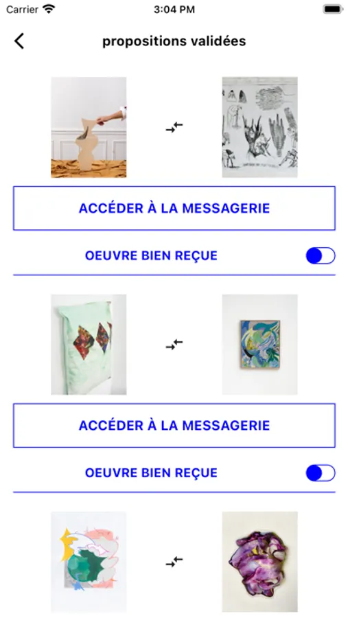 When his choice is made, you both receive a notification in your messaging systems where you discover who is the artist behind the work. You can then discuss, discover your work and agree on the terms of the exchange.